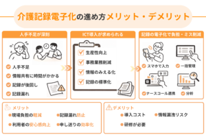 介護記録を電子化することで、スタッフ間でスムーズに情報共有できることがメリットです。